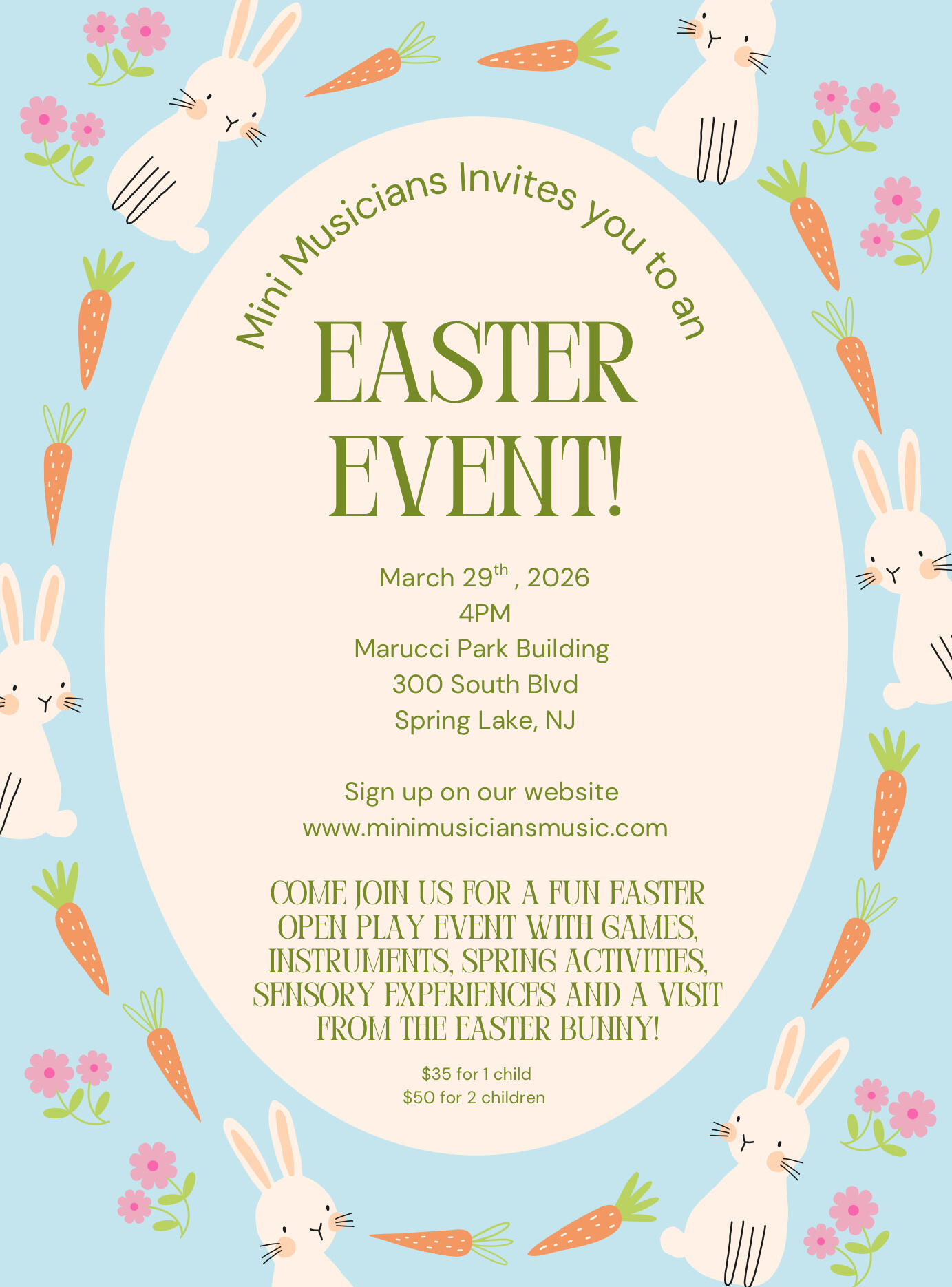 Sunday, March 29th, 2026Come have some spring fun with the Easter Bunny!
